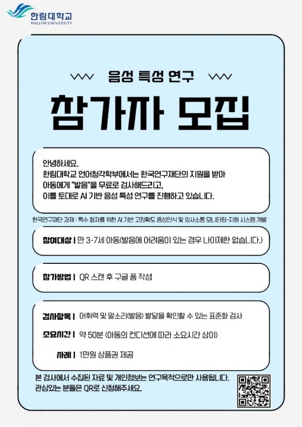 안녕하세요. 한림대학교 언어청각학부 말소리 연구팀입니다.
